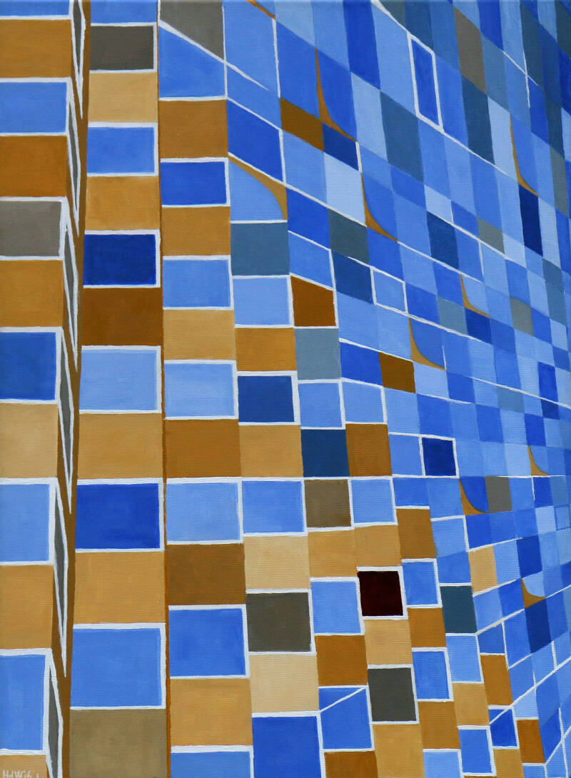 Dit schilderij heb ik gemaakt naar een krantenfoto over de verzorgingsflat "De Marckenburgh" in Den Haag.